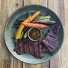 Grilled Skirt Steak with house chimichurri, served with 2 sides of your choice