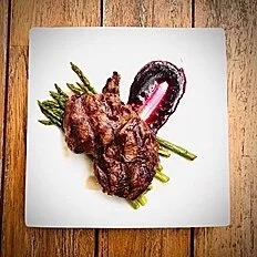 14oz Argentine Ribeye in a Malbec wine reduction sauce, served with grilled vegetables skewer & roasted potatoes