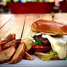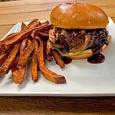 8 Oz beef Patty, blue cheese crumbles, bacon, romaine lettuce, grilled onions, and a malbec wine reduction. Served with fries, sweet potato fries or salad